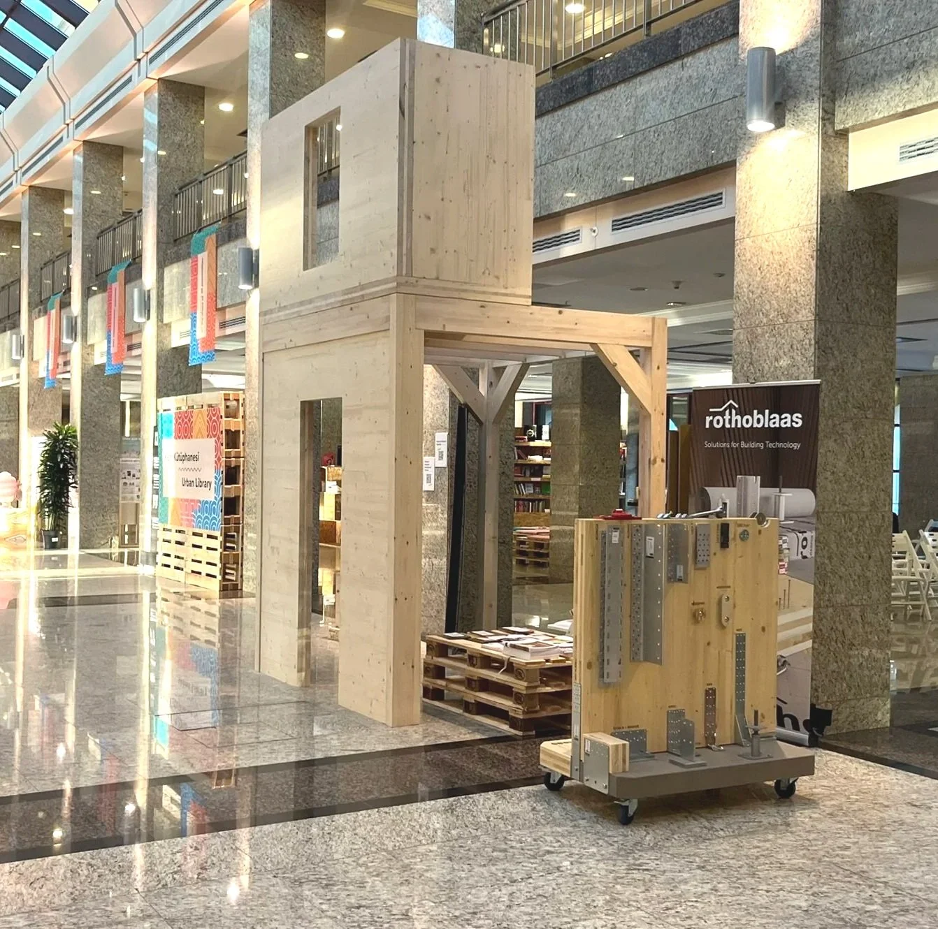 Engineered timber, natural in origin, yet enhanced through industrial processes to achieve high load-bearing capacity and precision, is increasingly present in today’s construction landscape. This exhibition offers an introduction to this new generation of building components, shaped by modern manufacturing techniques such as CLT and glulam. It brings together material samples, connection details, and a full-scale spatial setup, inviting visitors to explore engineered timber systems as a strong construction alternative for a more sustainable and resilient future.